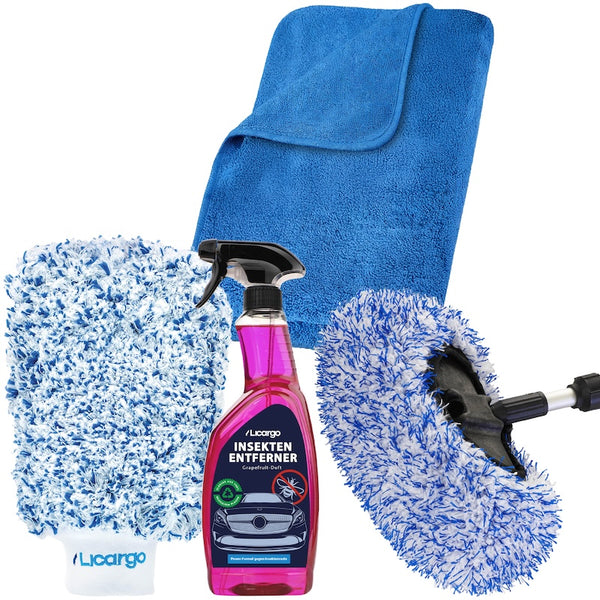 Umfassende Reinigung – Unser Set bietet nicht nur die Grundlagen für eine effektive Autowäsche, sondern enthält auch spezielle Produkte wie den Insektenentferner, der hartnäckige Verschmutzungen wie Insektenrückstände mühelos löst.