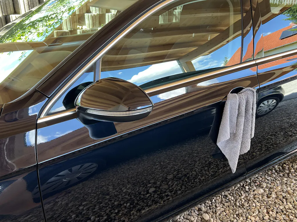 6. Nach der Nasswäsche solltest Du Deinen Wagen direkt abtrocknen. Das extra große Licargo Mikrofasertuch mit 90x60cm eignet sich ideal, um Dein Auto schnell und ohne Wasserflecke zu trocknen."