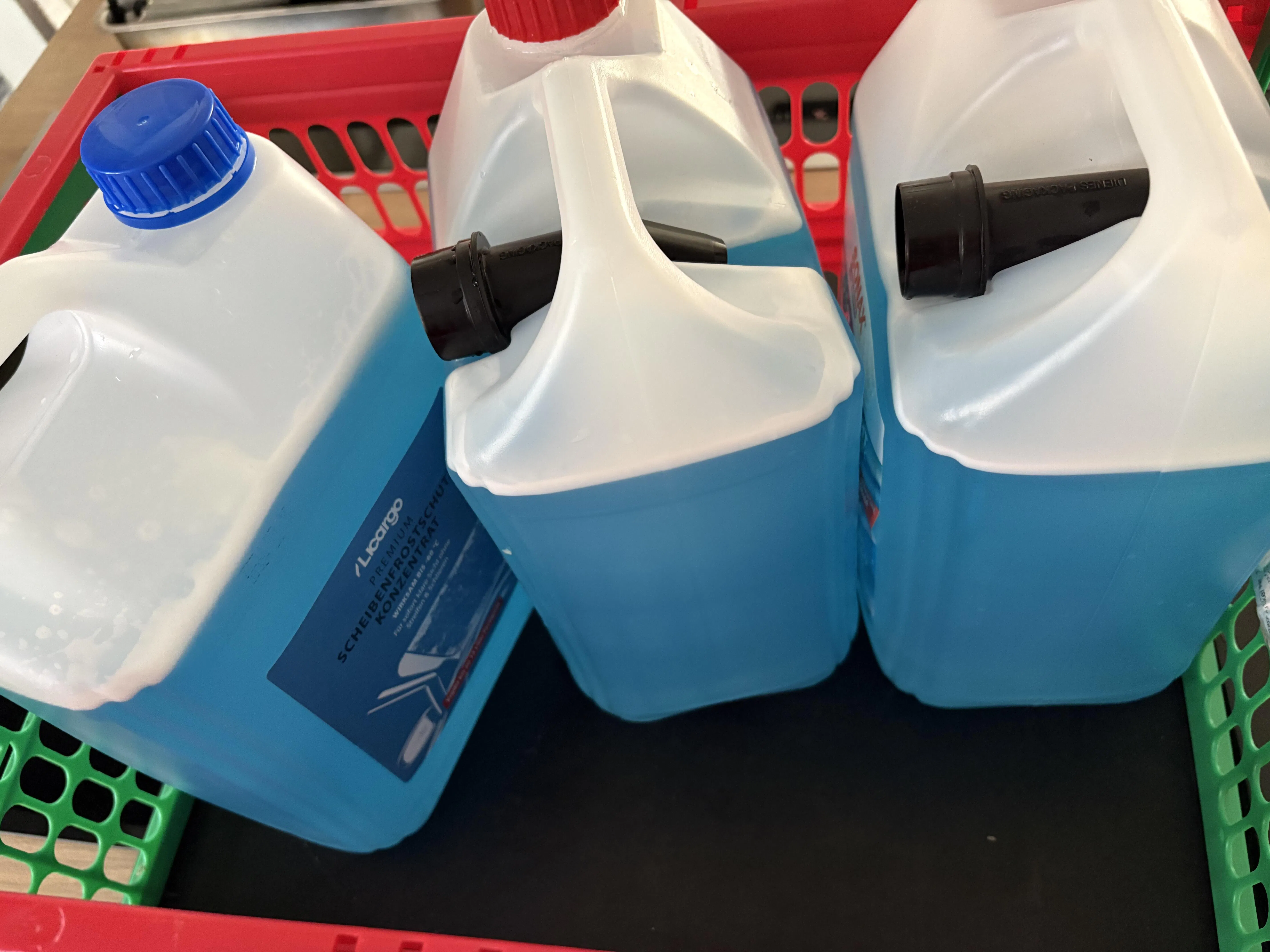 Anwendung: Restentleerte Scheibenwaschanlage mit Licargo Scheibenfrostschutz Konzentrat befüllen und dann mit Wasser im gewünschten Verhältnis (s. Mischtabelle unten) auffüllen. Nach dem Einfüllen die Scheibenwaschanlage betätigen, um die Leitungen durchzuspülen.