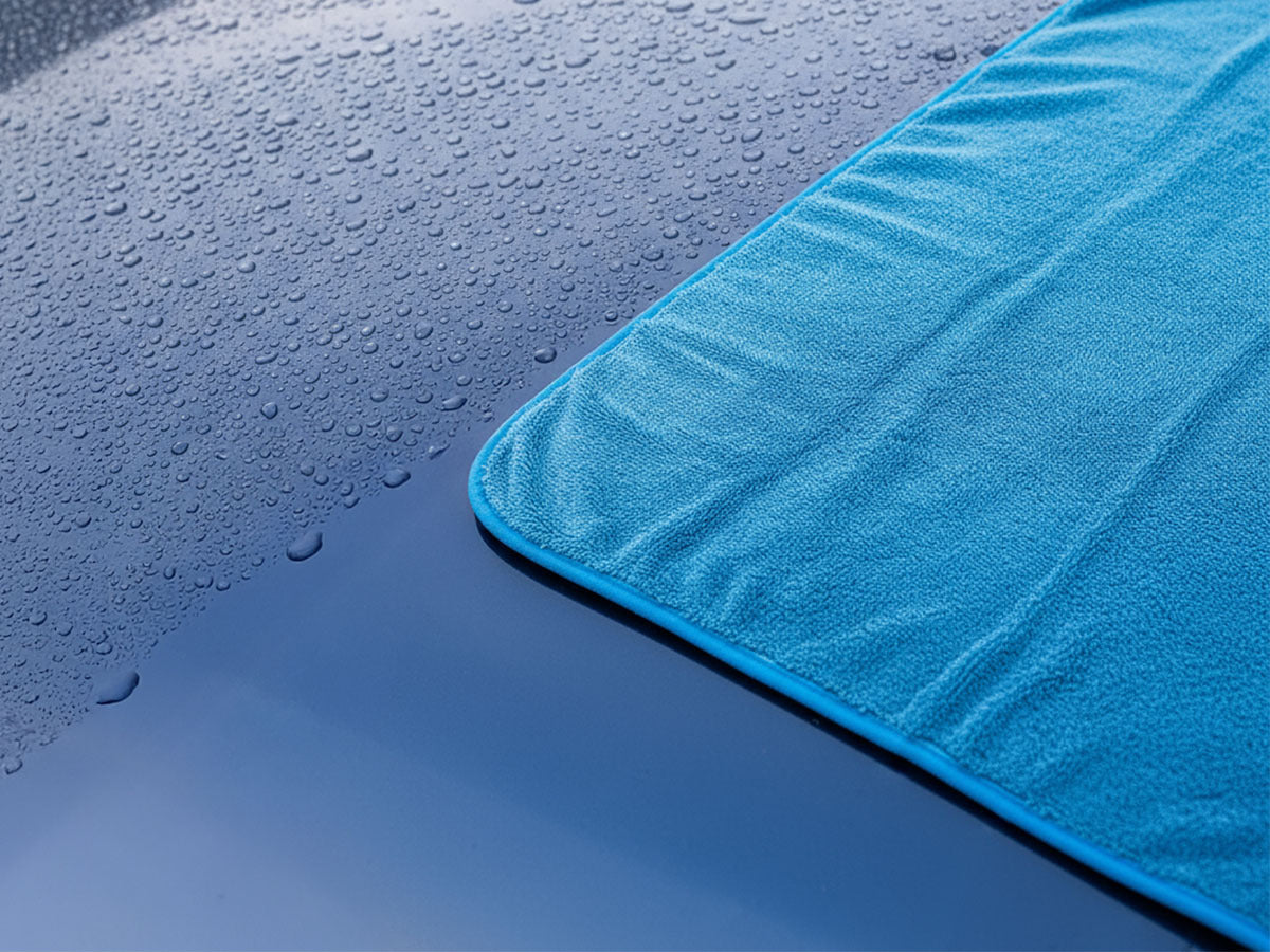 Trocken mit nur einem Tuch – Mit unserem extra großen Trockentuch trocknest Du sogar einen Kleinbus nach der Autowäsche restlos ab.